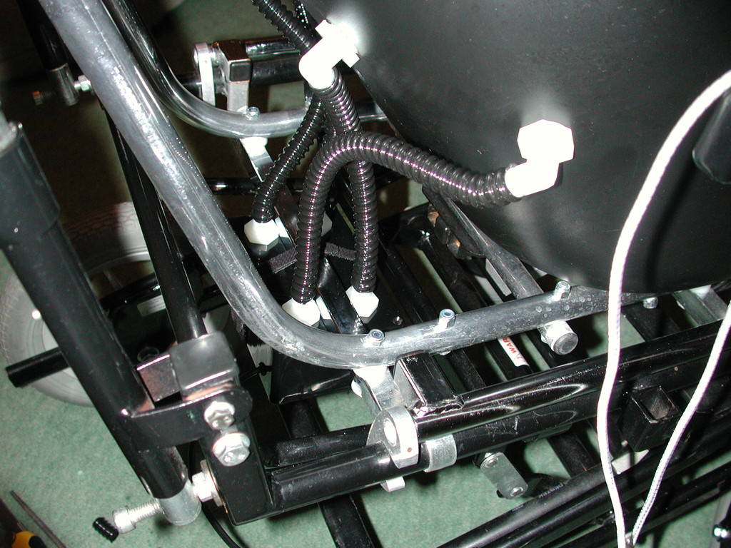 type connectors in order to make battery changes and charging easier. The battery is housed in a bag attached to the chair.