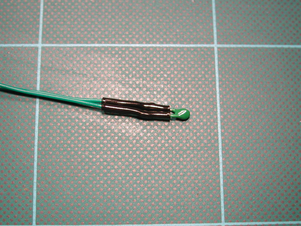 through the thermistor (sensor) drops due to temperature rise. The unit is adjustable and I set it to trigger at about